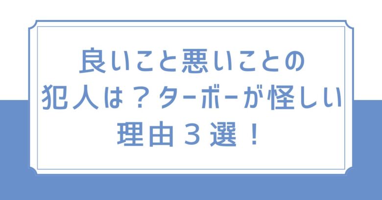 良いこと悪いことの犯人は?ターボーが怪しい理由3選!