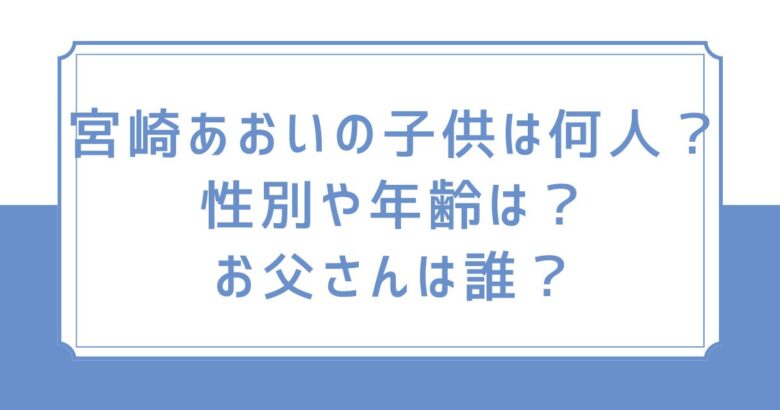 結婚や出産でTV出演が減っていた宮崎あおいさん。徐々に目にする機会が増え、昔と変わらず可愛いと話題です。そんな宮崎あおいさんは何人の子供がいるのか?性別・年齢や誰がお父さんか、調査しました! 宮崎あおいの子供は何人?性別や年齢は? 宮崎あお...