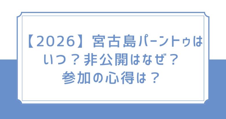 【2026】宮古島パーントゥはいつ?非公開はなぜ?参加の心得は?
