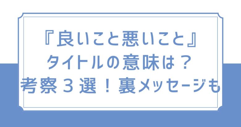 『良いこと悪いこと』タイトルの意味は?考察3選!裏メッセージも
