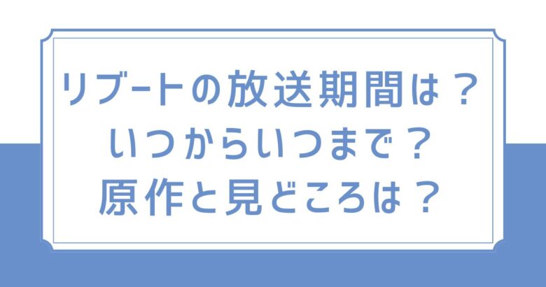 2026年1月放送開始のTBS日曜劇場『リブート』のキャストが発表され話題となっています。『リブート』の放送期間がいつからいつまでか、予想してみました!また、『リブート』の原作の有無や見どころについても調査しました! リブートの放送期間は?いつか... -