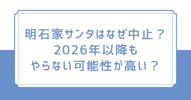 明石家サンタはなぜ中止?2026年以降もやらない可能性が高い?