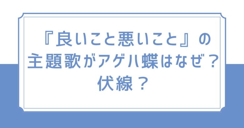『良いこと悪いこと』の主題歌がアゲハ蝶は伏線?