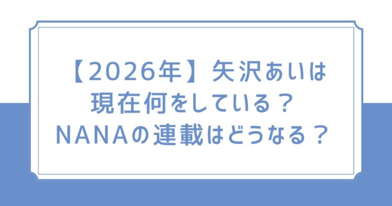 大人気漫画家の矢沢あいさんが休載してから16年が経過。2025年はユニクロコラボやムック本発売で話題でしたが、2026年は活動再開となるのでしょうか?矢沢あいさんの現在と、NANAの連載がどうなるのか、みんなの声も調査しました! 【2026年】矢沢あいは現... -