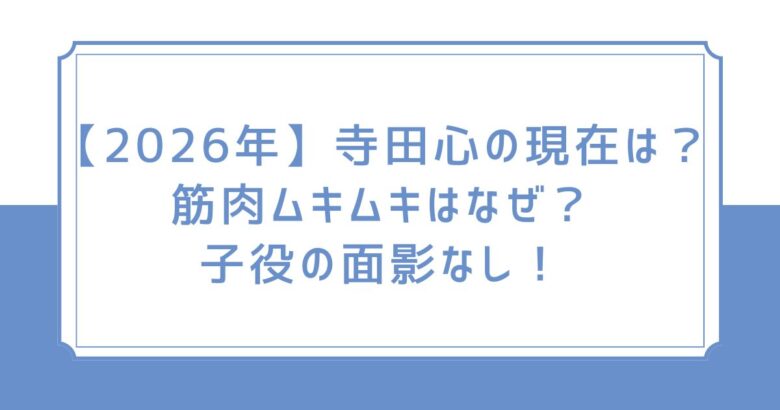 子役時代から人気者だった寺田心さん。最近は筋肉ムキムキで子役の面影がないと話題になっています。寺田心さんはどこに向かっているのか?なぜ筋トレに励んでいるのか?調査しました! 【2026年】寺田心の現在は? 現在の寺田心さんは、高校2年生。主な活... -