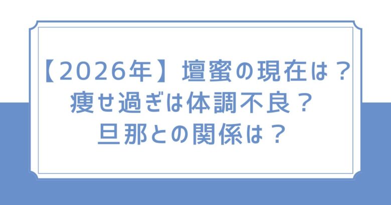 休養から復帰して、壇蜜さんをテレビで見かけることが増えた2025年。その度に痩せすぎでは?と心配の声もあがっています。そんな壇蜜さんの現在の仕事や体調について、旦那さんとの関係も調査しました! 【2026年】壇蜜の現在は? 壇蜜さんは現在、2023年... -